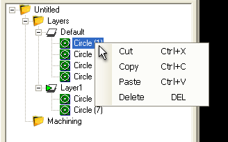 drawing tree by a small green arrow icon. The active layer is set by right clicking a layer in the drawing tree, then
